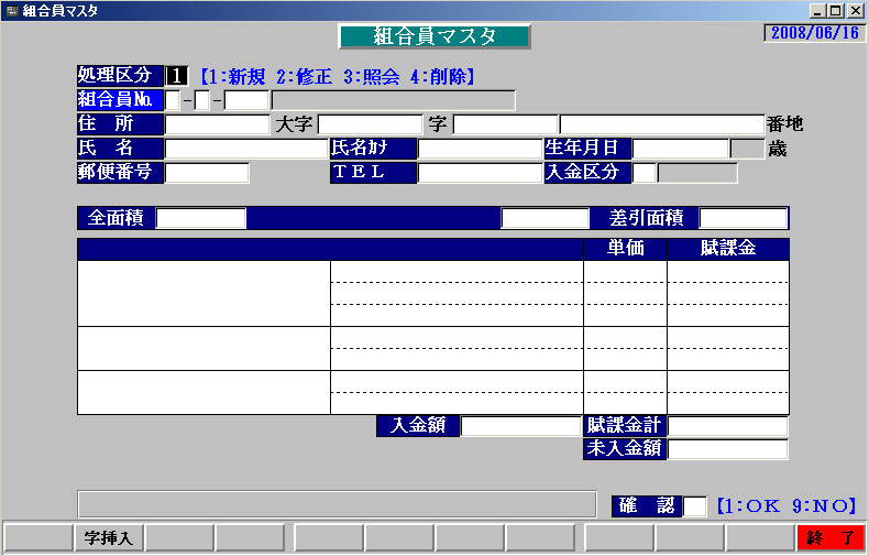 ※画面は当方がオリジナルで開発致しました、土地改良区・賦課金管理システムの組合員登録画面になります。