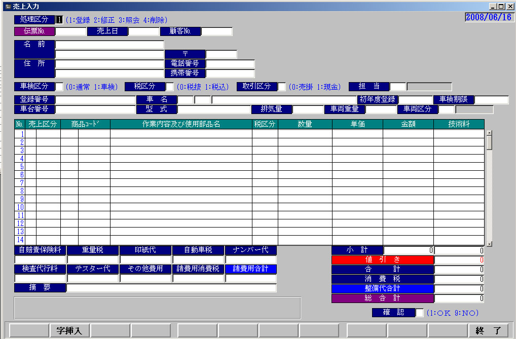 ●車屋さん専用に設計された各入力は、普通の販売管理では満足出来ないお客様でも